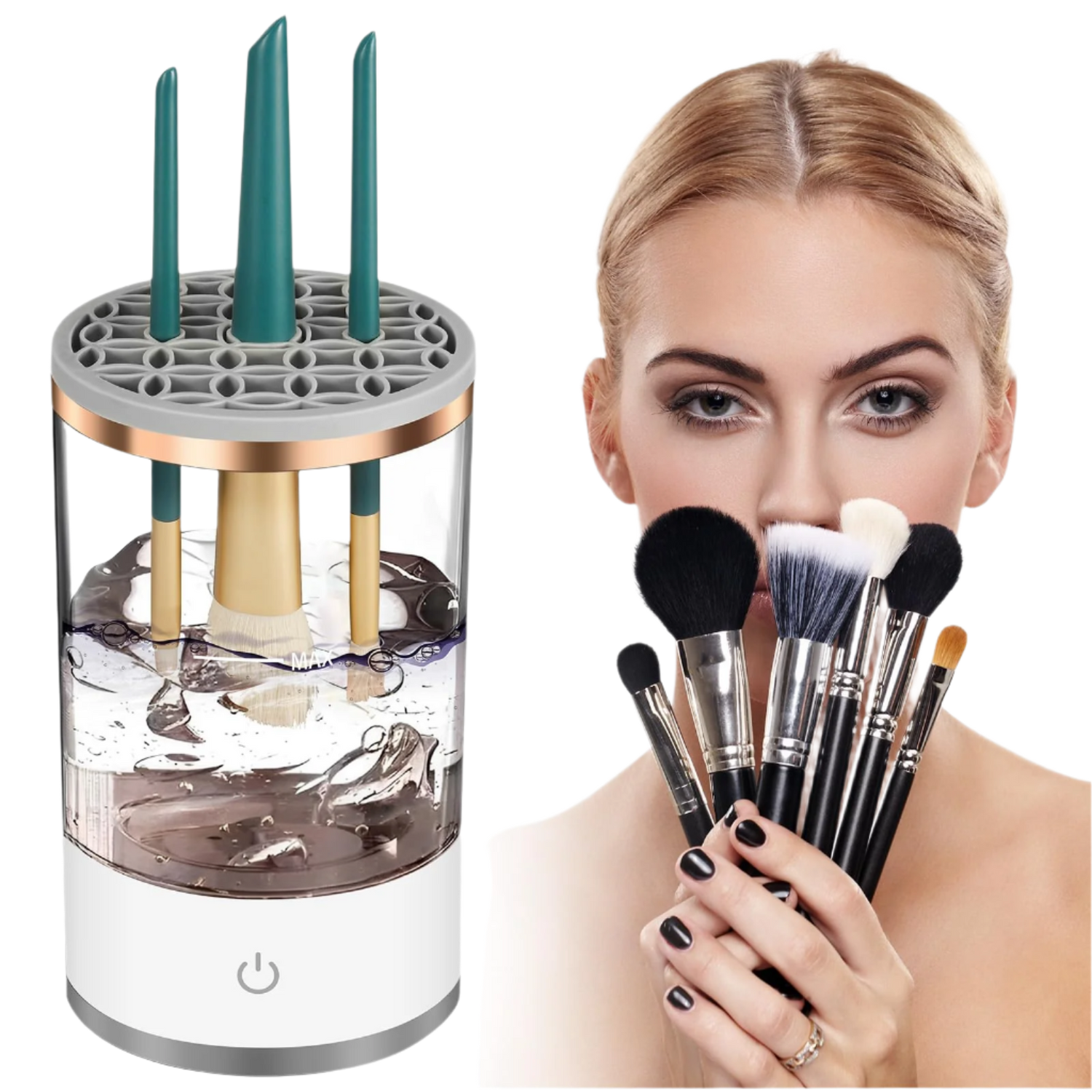 Elevate your beauty routine with our Electric Makeup Brush Cleaner! It’s perfect for home or travel. With its sleek design, it seamlessly complements any vanity, making brush maintenance a stylish breeze!